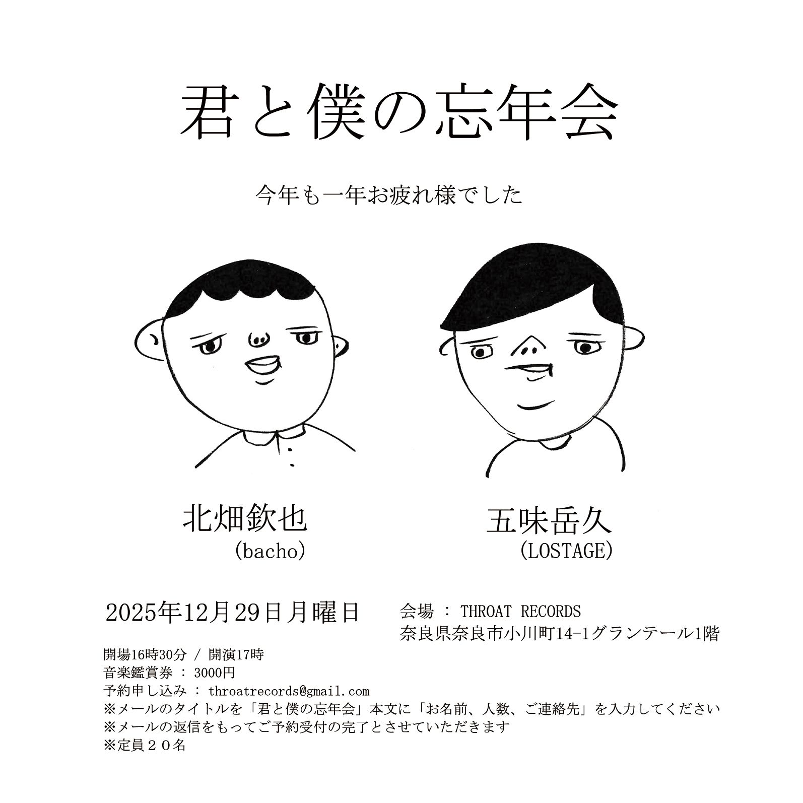 ※メールのタイトルを「君と僕の忘年会」本文に「お名前、人数、ご連絡先」を入力してください